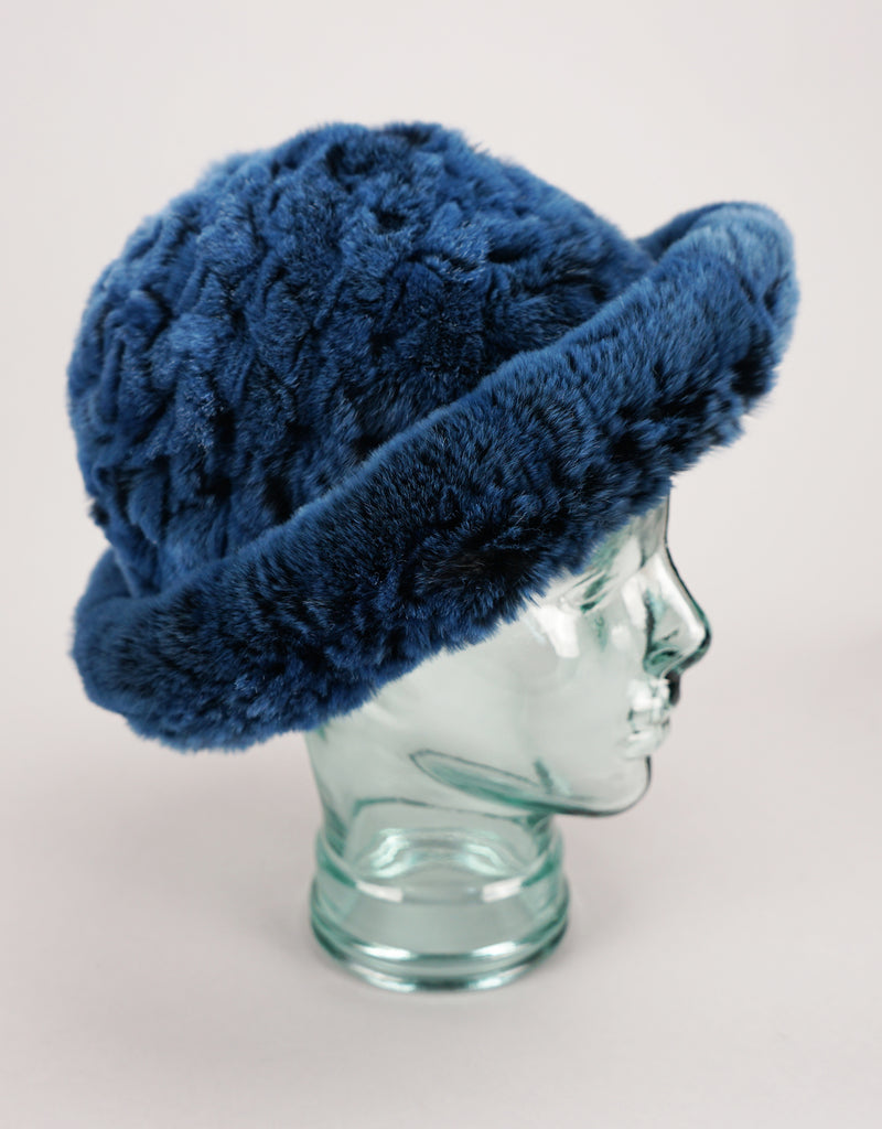 The level of warmth and softness of this rex rabbit brim style hat is beyond description.  Handwoven, it has fur on both the inside and out making it the ideal hat for cold, winter weather. Perfect for travelling, this hat folds up easily and can simply be tucked into your handbag.
