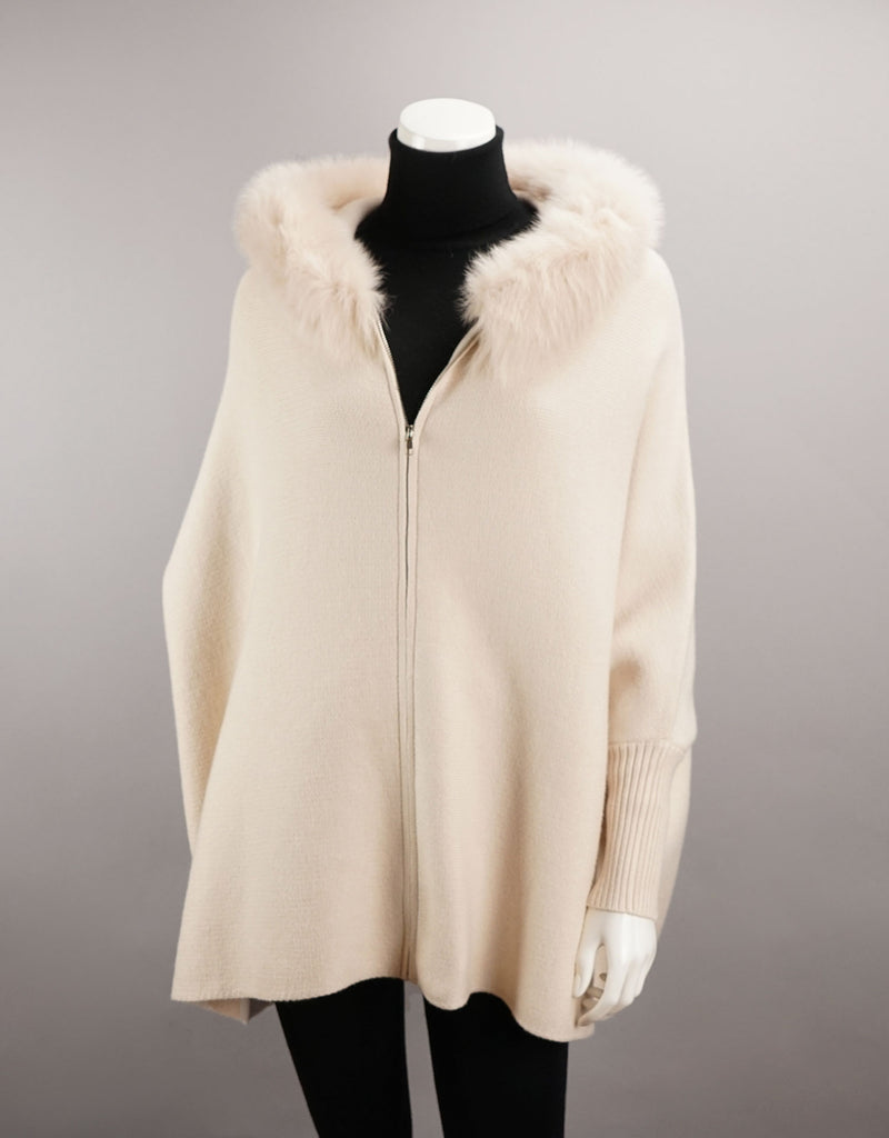 Discover the perfect hybrid with the Hooded Zip Poncho, the ultimate combination of comfort and style. Get the best of both worlds - the convenience of a hoodie with the trendy look of a poncho. Effortlessly chic and easily wearable with a hood and zipper, it's the ideal addition to any wardrobe.