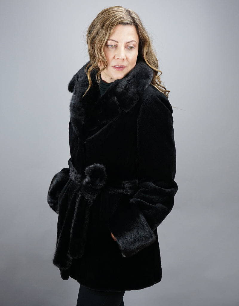 This luxurious sheared mink jacket is an elegant, modern must-have. The collar, cuffs and belt are crafted with classic long-hair mink, creating a subtle, stunning contrast. Wear it everyday and look fabulous!