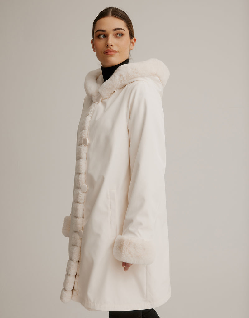 Hooded Reversible Faux Fur Stroller- Vanilla