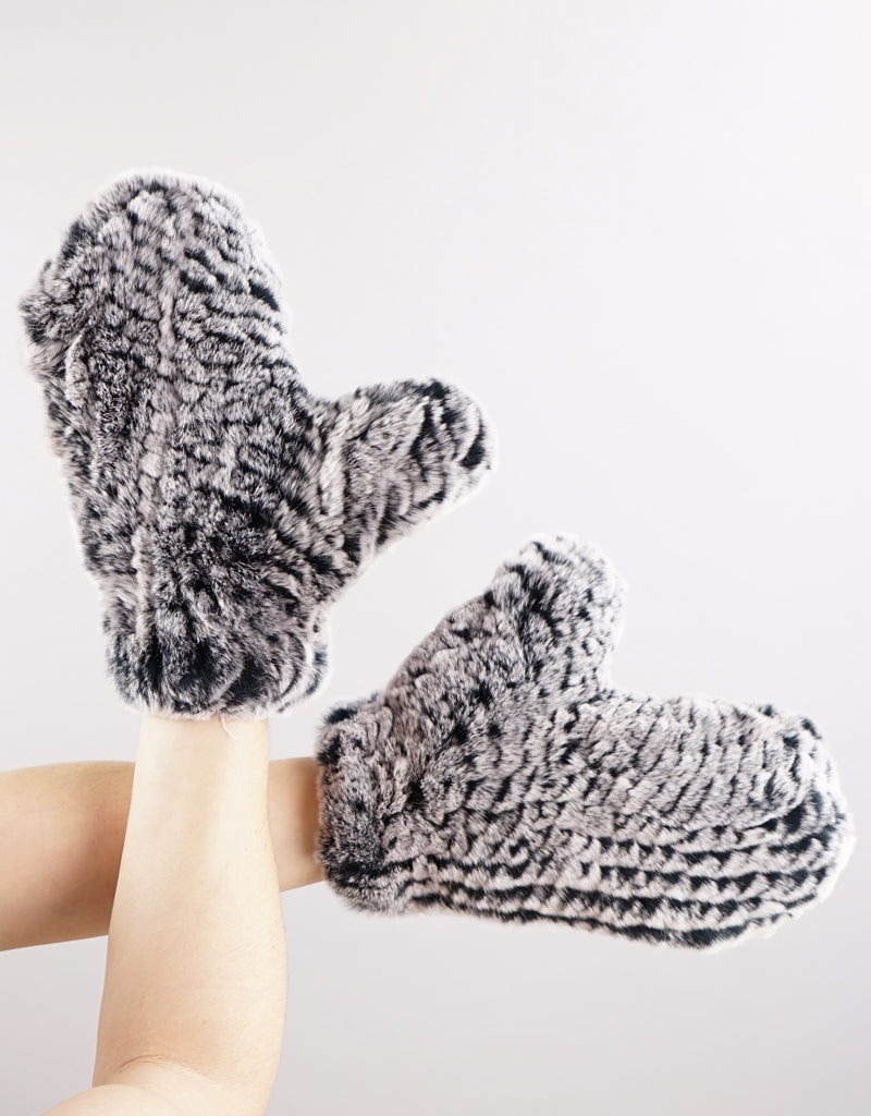 Handwoven and unbelievably soft, you won't want to take these rex rabbit mittens off. Amazingly warm, these mitts have fur on both the inside and out and the stretch netting makes them a perfect fit for everyone!