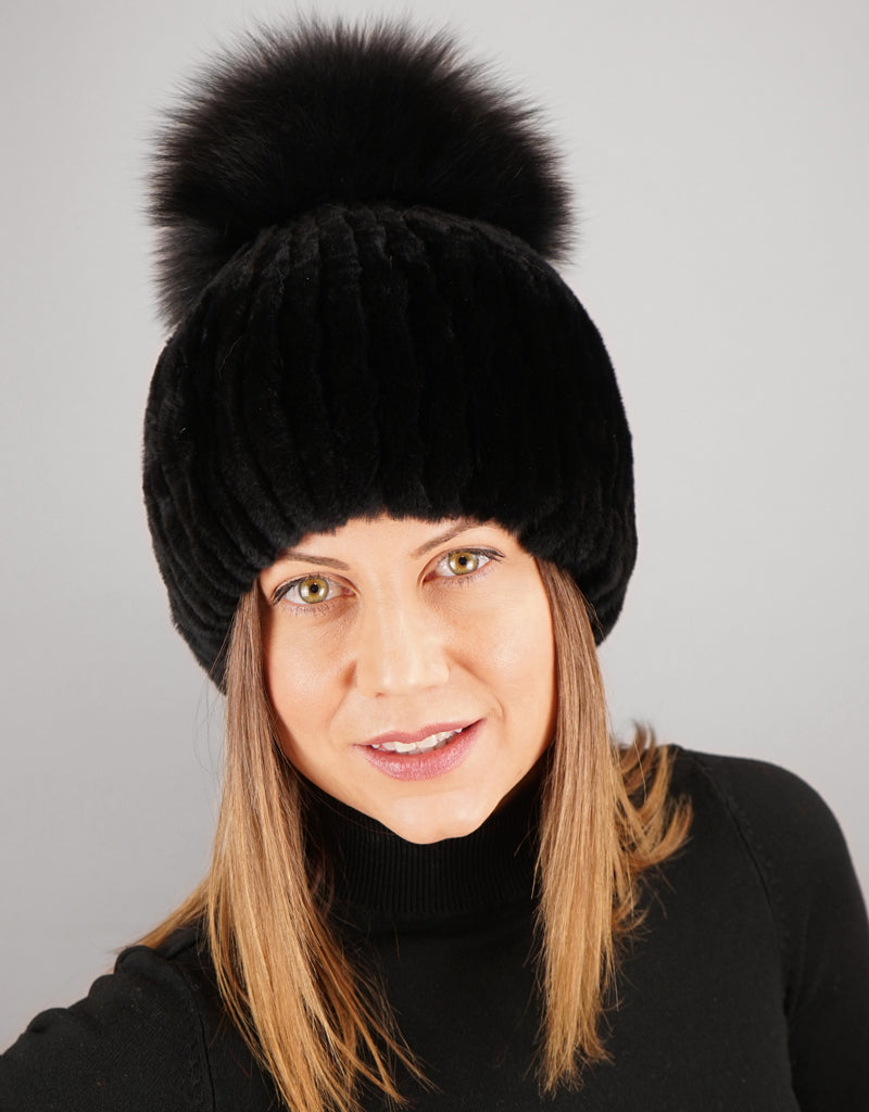 The pom pom says it all...this is a HAPPY hat!  This stylish and playful hat has the colours, the warmth and, of course, the amazing fox pom!  The knit lining and stretch detail provide a warm and comfortable fit.  Made in a variety of vibrant colours. One Size.