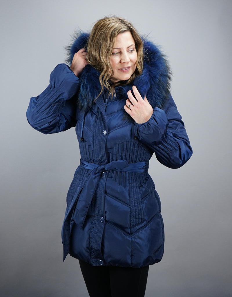 The perfect quilt detail makes this down stroller a truly figure-flattering garment for all sizes.  While it looks fitted, the stretch and ease of the rouched waist make it very comfortable.
