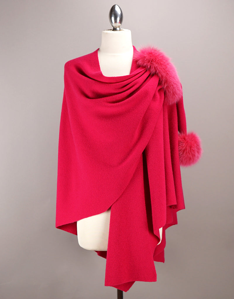 Made of 100% wool, this stunning wrap is a wardrobe must-have. Subtly accented with genuine fur trim, this versatile piece can be worn with the loop “pull thru” for a hands-free option or as an open poncho or shawl for a more casual look. The one-size shawl is perfect to pair with your favourite jeans, for travel or an evening out!